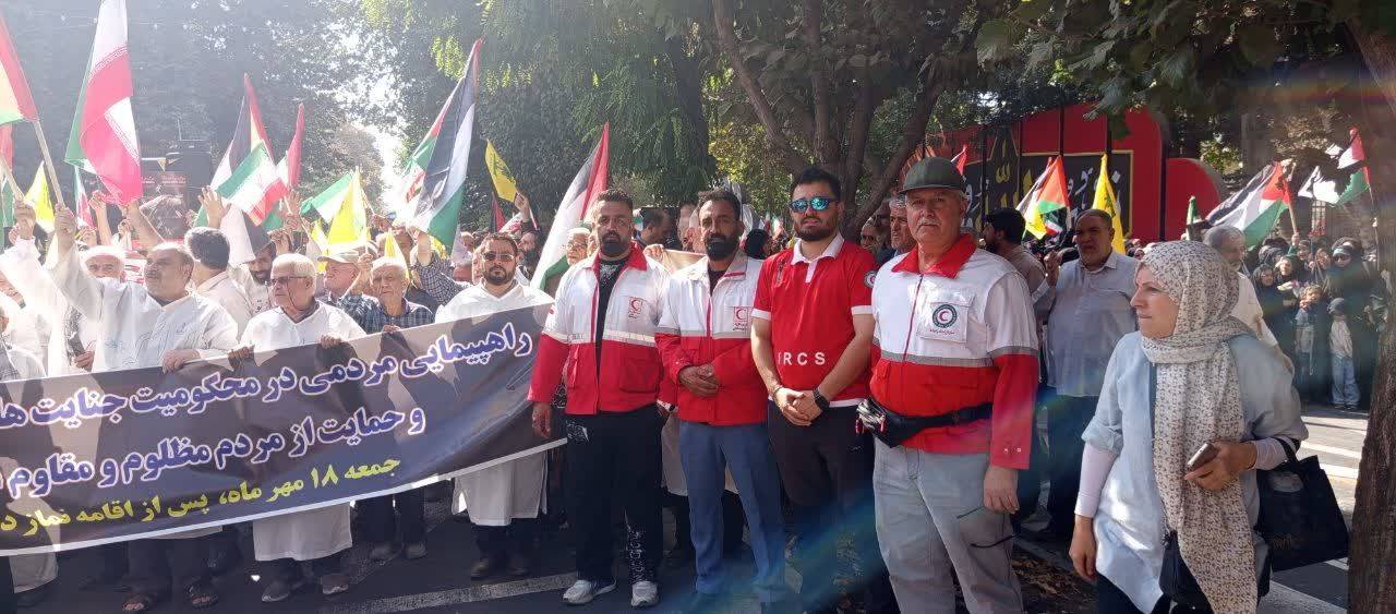 به گزارش روابط عمومی جمعیت هلال احمر استان البرز، رئیس جمعیت هلال احمر شهرستان کرج با اشاره به وظیفه جمعیت هلال احمر در حمایت از اقشار آسیب پذیر و کمک به افراد جنگ زده گفت: پرسنل و نجاتگران جمعیت هلال احمر شهرستان کرج همراه با اقشار مختلف مردم با حضور در مصلای امام خمینی (ره) کرج ضمن پوشش امدادی تجمع مردم در حمایت از مردم مظلوم غزه، خواستار اقدام فوری مجامع بین المللی برای توقف جنایات صهیونیست ها در سرزمین فلسطین اشغالی شدند.