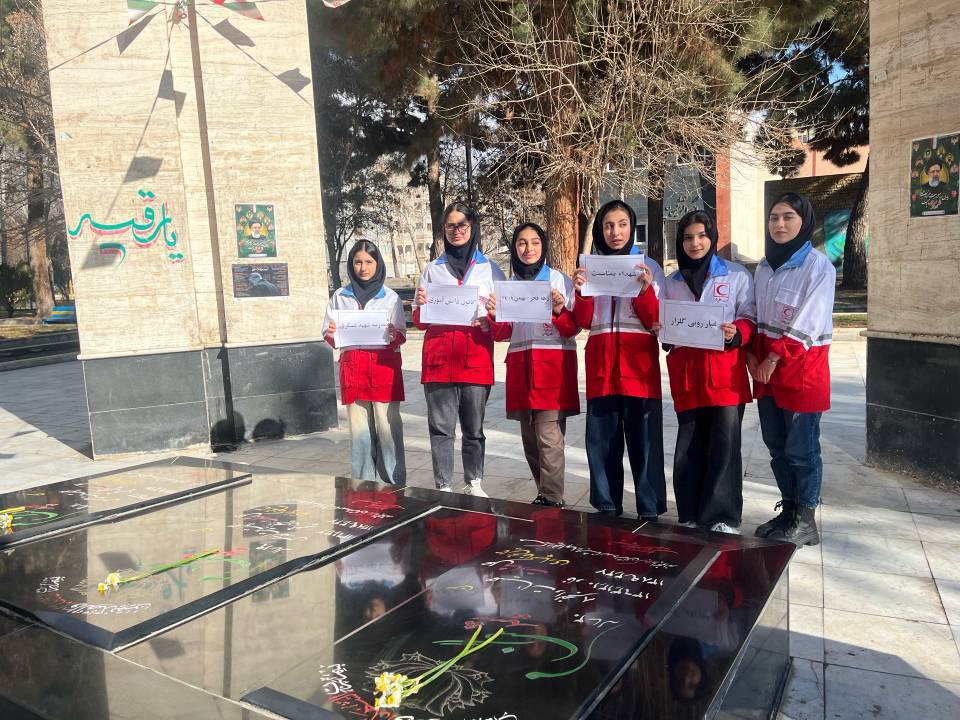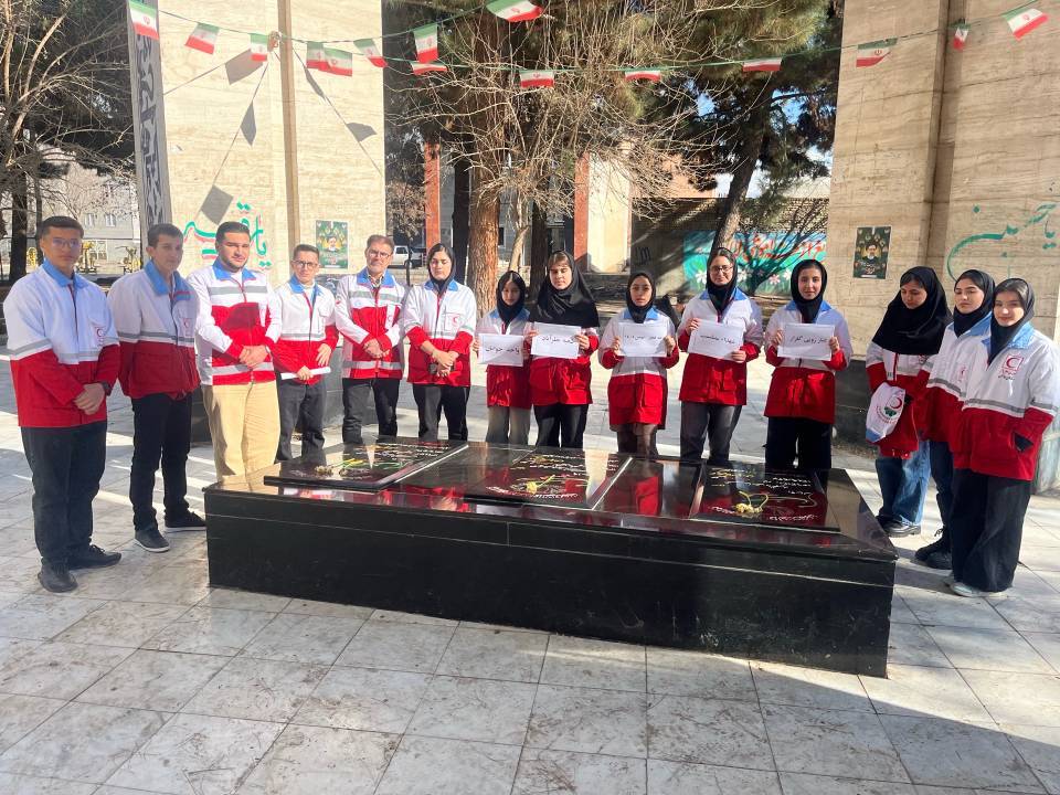 غبارروبی مزار شهدا و برپایی جشن توسط اعضای هلال احمر نظرآباد در گرامیداشت دهه مبارک فجر و نیمه شعبان